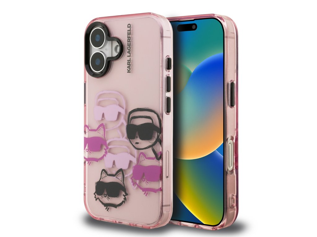 Karl Lagerfeld IML Multi K&CH Heads Zadní Kryt pro iPhone 16 Pink