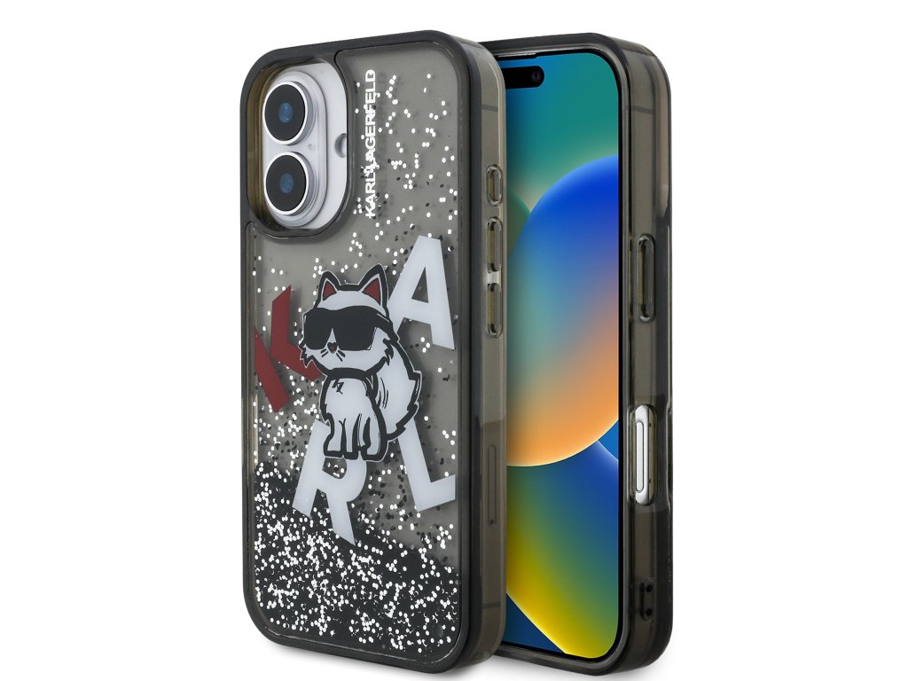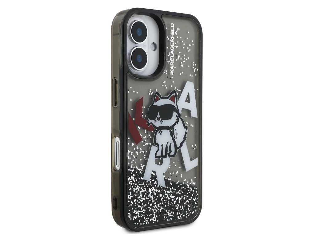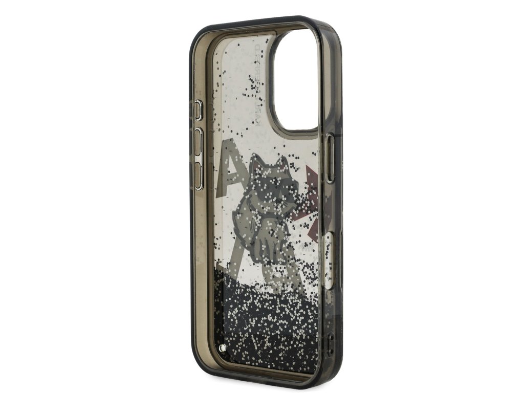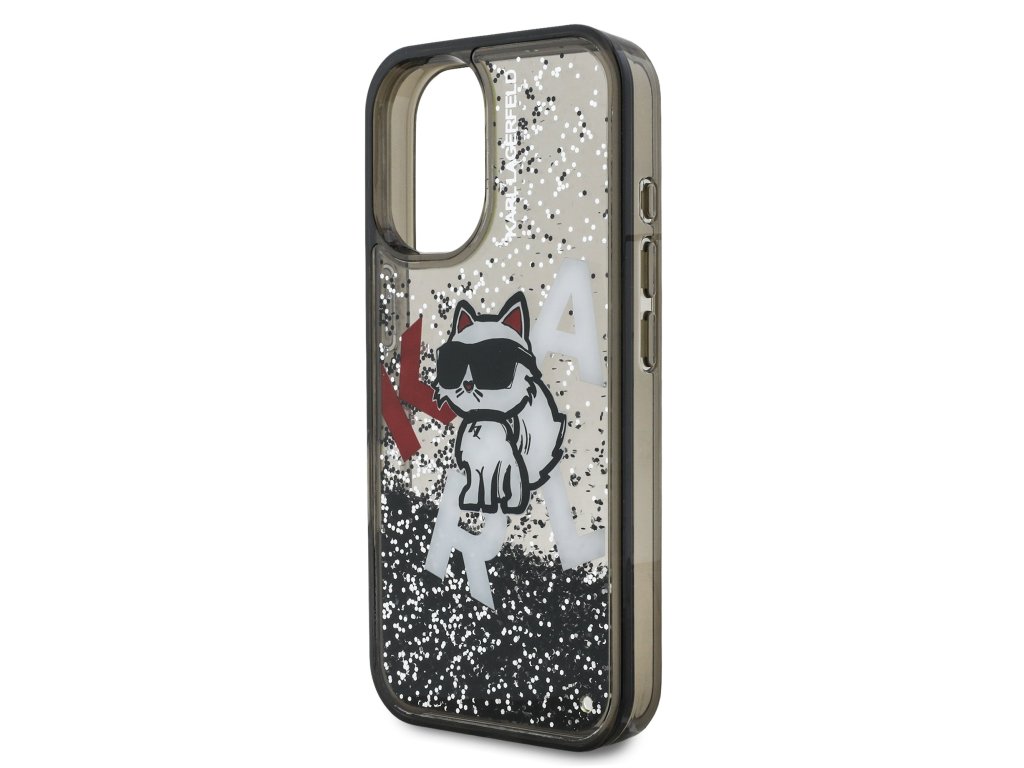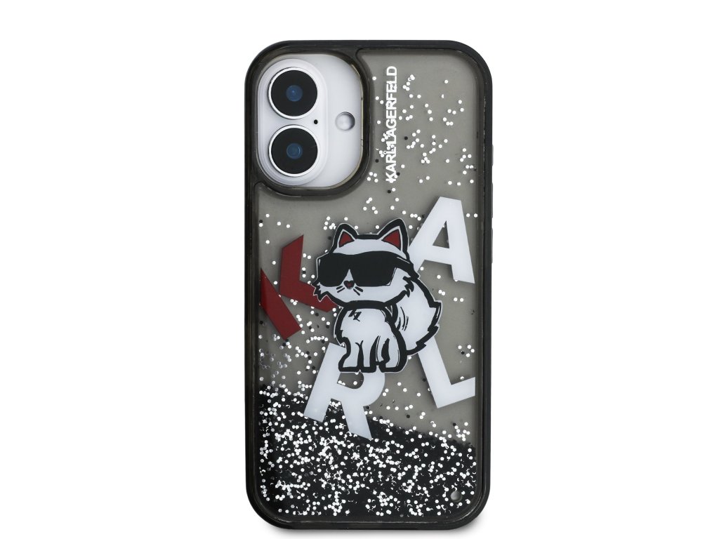 Karl Lagerfeld Liquid Glitter Scattered Choupette Zadní Kryt pro iPhone 16 Black
