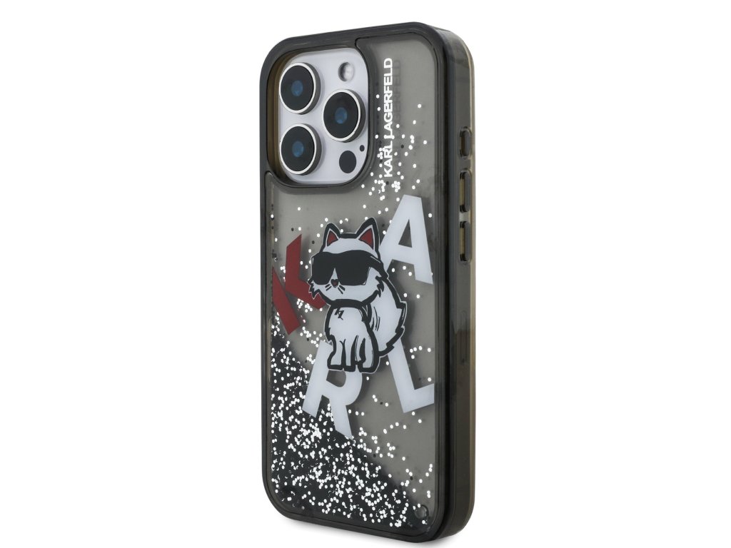 Karl Lagerfeld Liquid Glitter Scattered Choupette Zadní Kryt pro iPhone 16 Pro Black