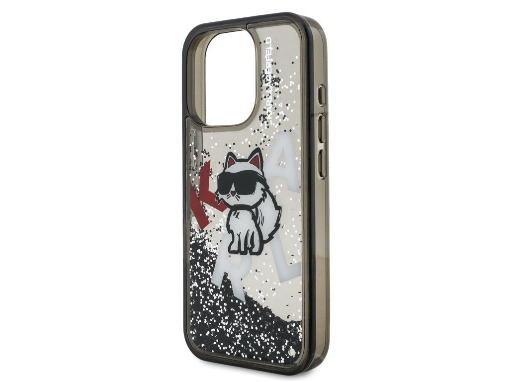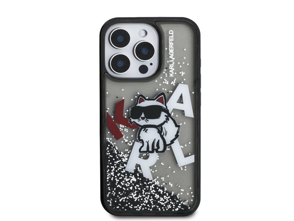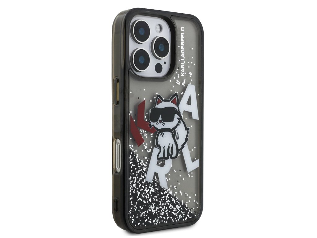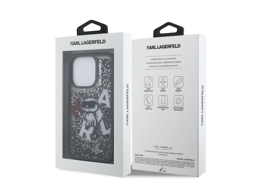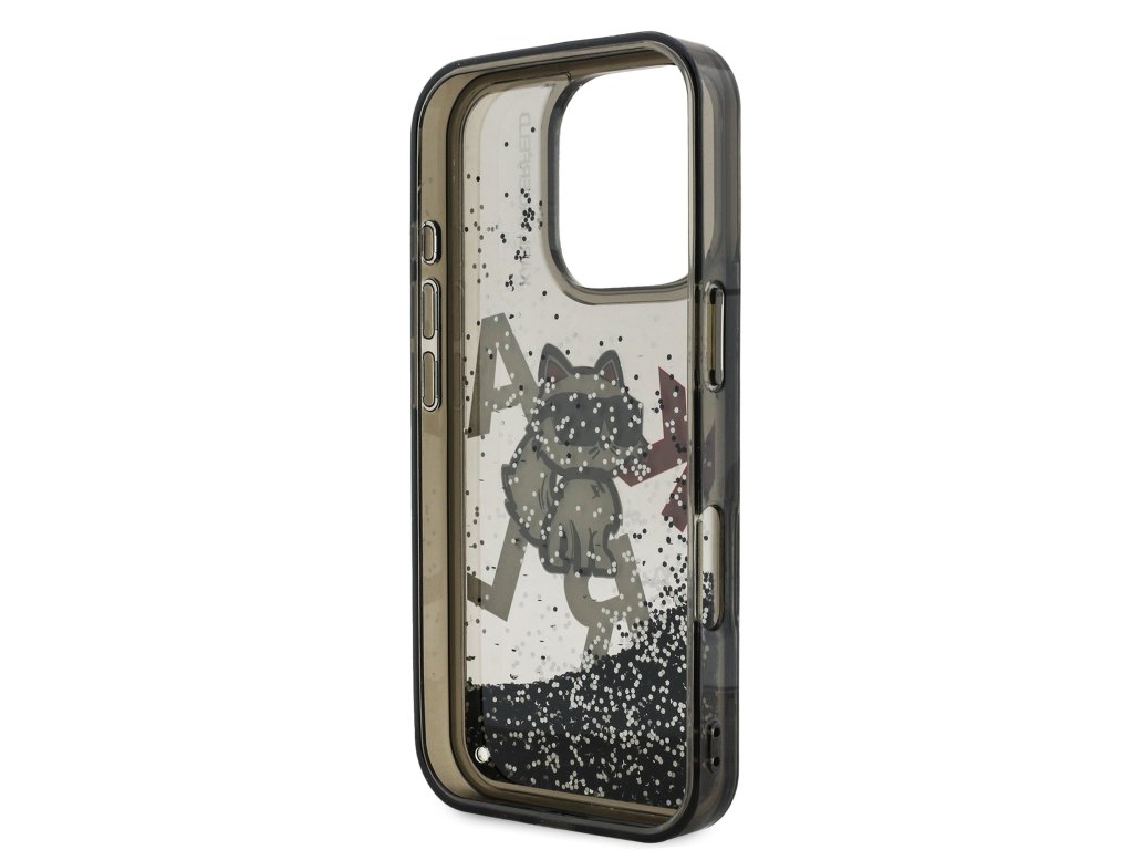 Karl Lagerfeld Liquid Glitter Scattered Choupette Zadní Kryt pro iPhone 16 Pro Max Black