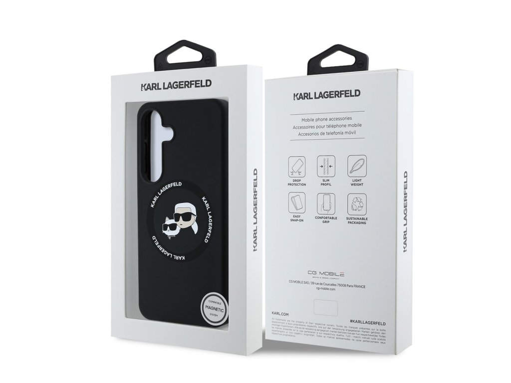 Karl Lagerfeld Liquid Silicone K&CH Heads MagSafe Zadní Kryt pro Samsung Galaxy S25 Black