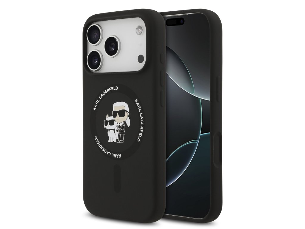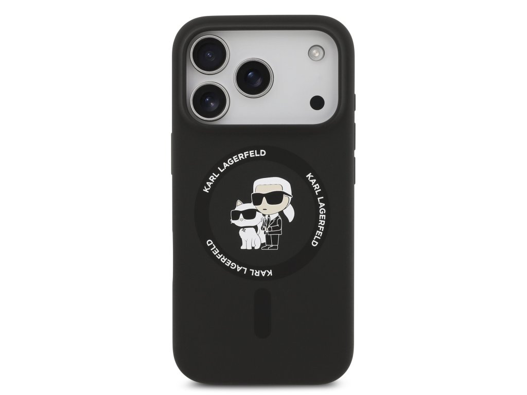 Karl Lagerfeld Liquid Silicone Karl and Choupette MagSafe Zadní Kryt pro iPhone 17 Pro Black