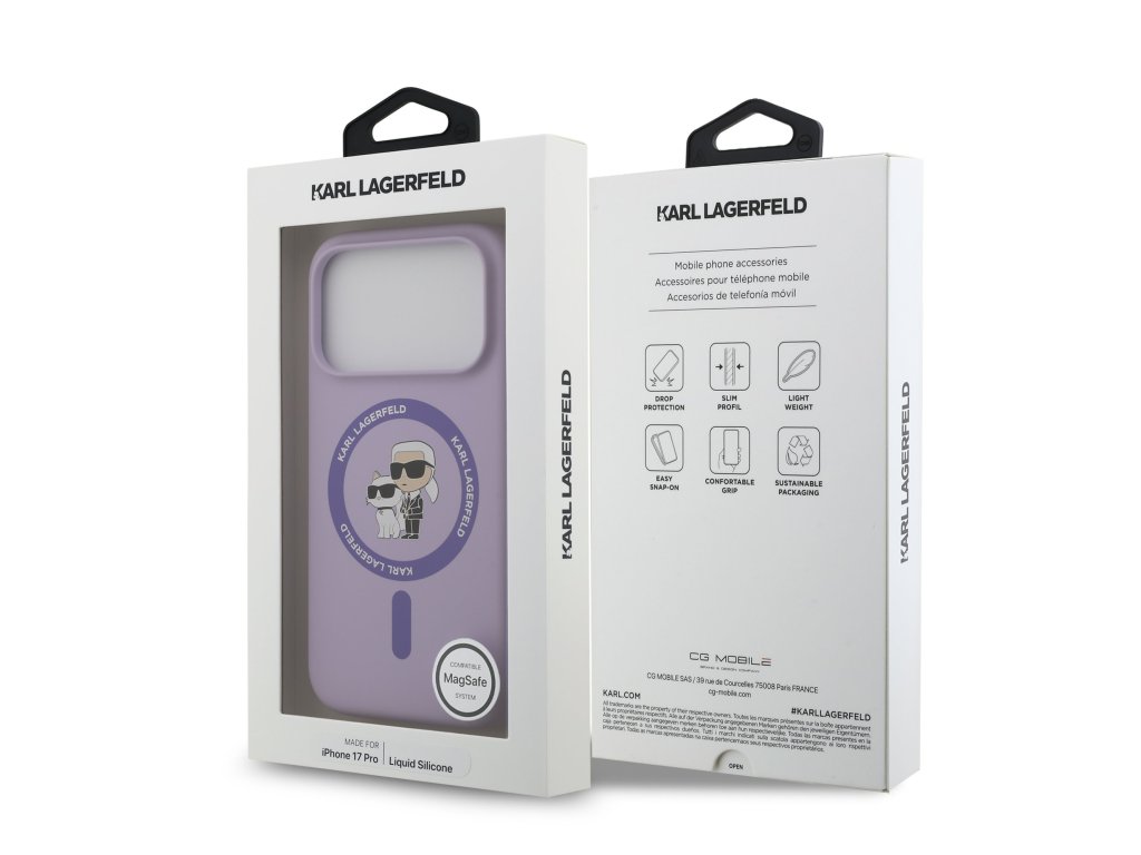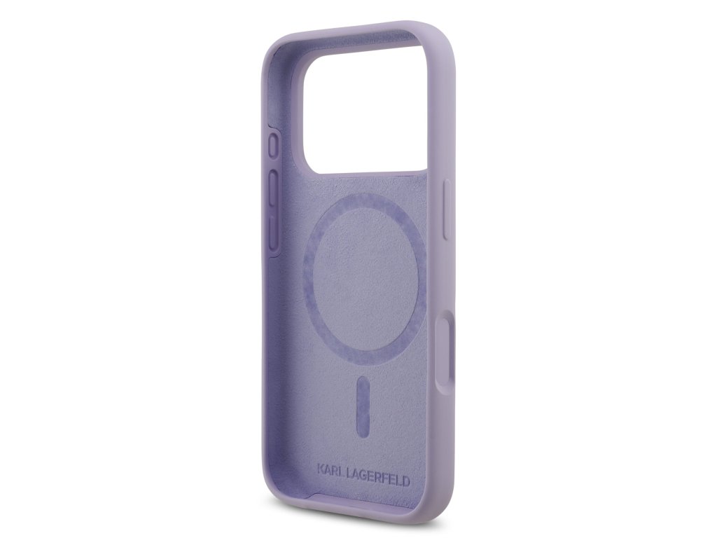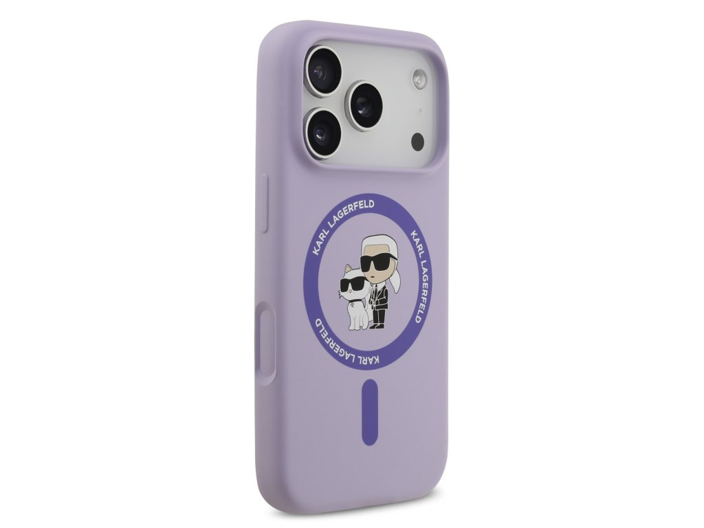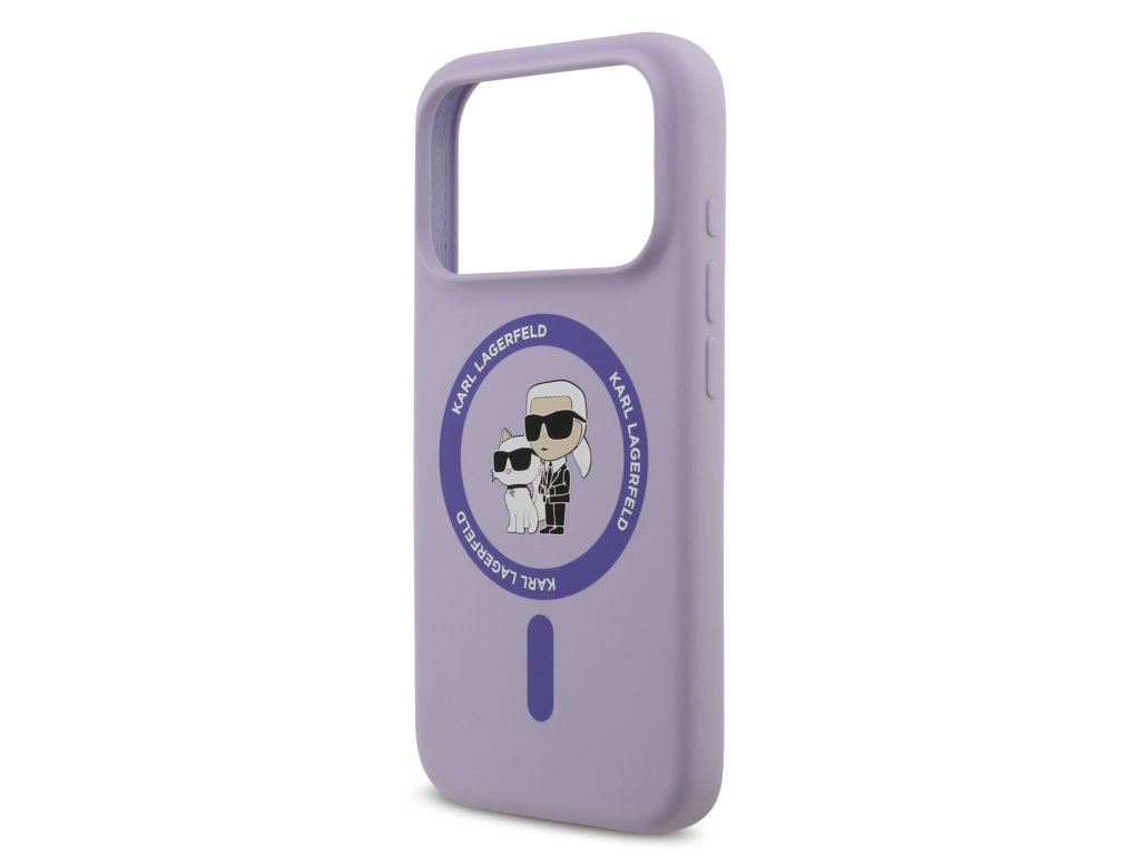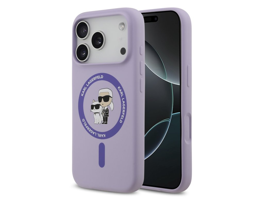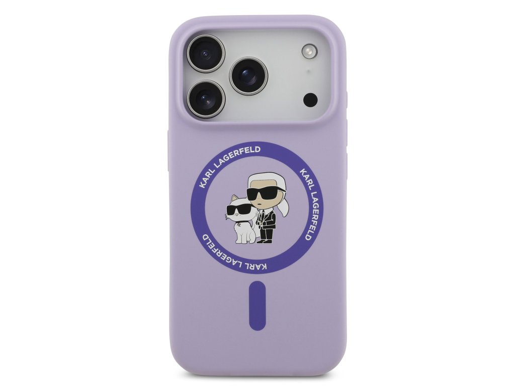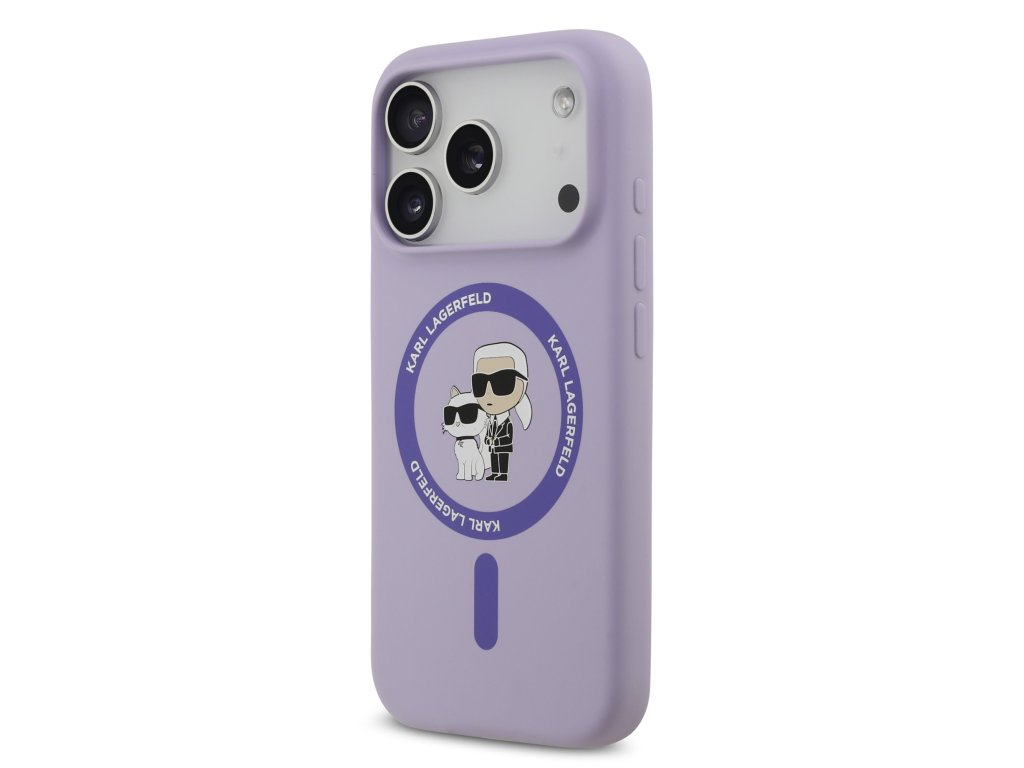 Karl Lagerfeld Liquid Silicone Karl and Choupette MagSafe Zadní Kryt pro iPhone 17 Pro Purple