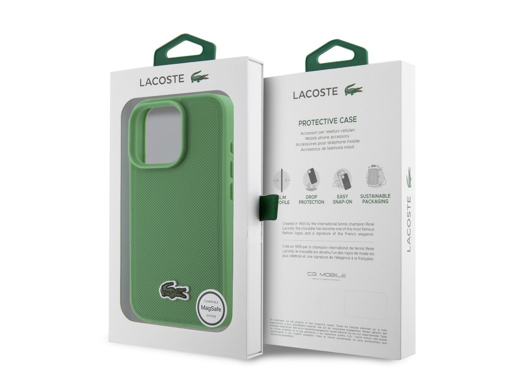 Lacoste Iconic Petit Pique Woven Logo MagSafe Zadní Kryt pro iPhone 16 Pro Green