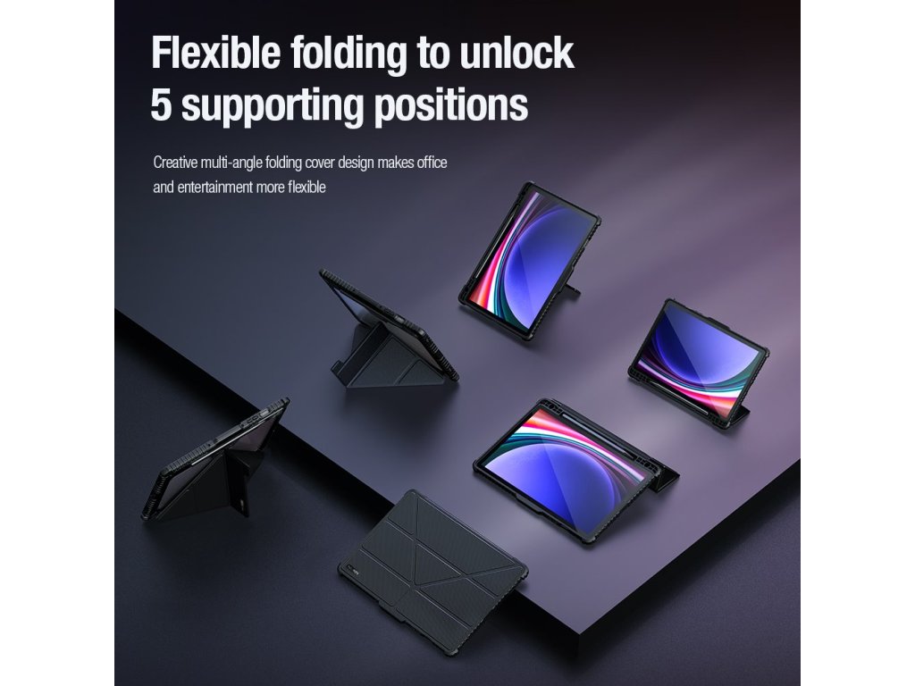 Unikátní skládací kryt zobrazuje tablet ve všech zvolených úhlech pro psaní, čtení a prohlížení webu.