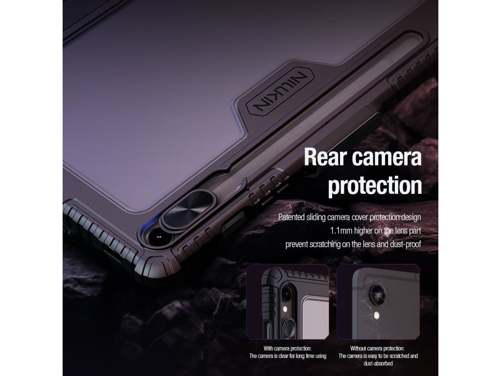Nillkin Bumper Pro ochranné pouzdro s praktickým flipem, který slouží zároveň jako stojánek je vyrobeno z vybraného materiálu TPU a PC.Čočka fotoaparátu je chráněna posuvným krytem