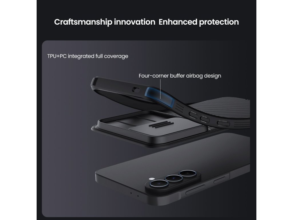 Nillkin CamShield PRO je unikátní kryt s posuvným krytem čočky fotoaparátu.Navíc je oproti klasickému CamShield unikátní v tom, že se skládá ze dvou materiálů.