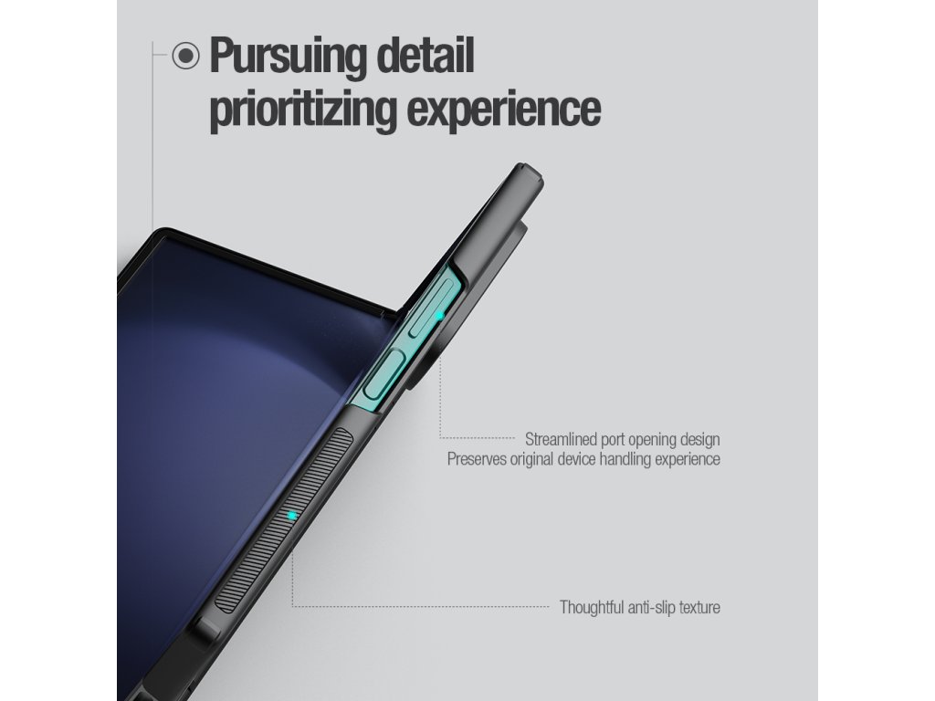 Přesné výřezy na ovládací prvky a potřebné konektory zajišťují pohodlnou obsluhu telefonu.