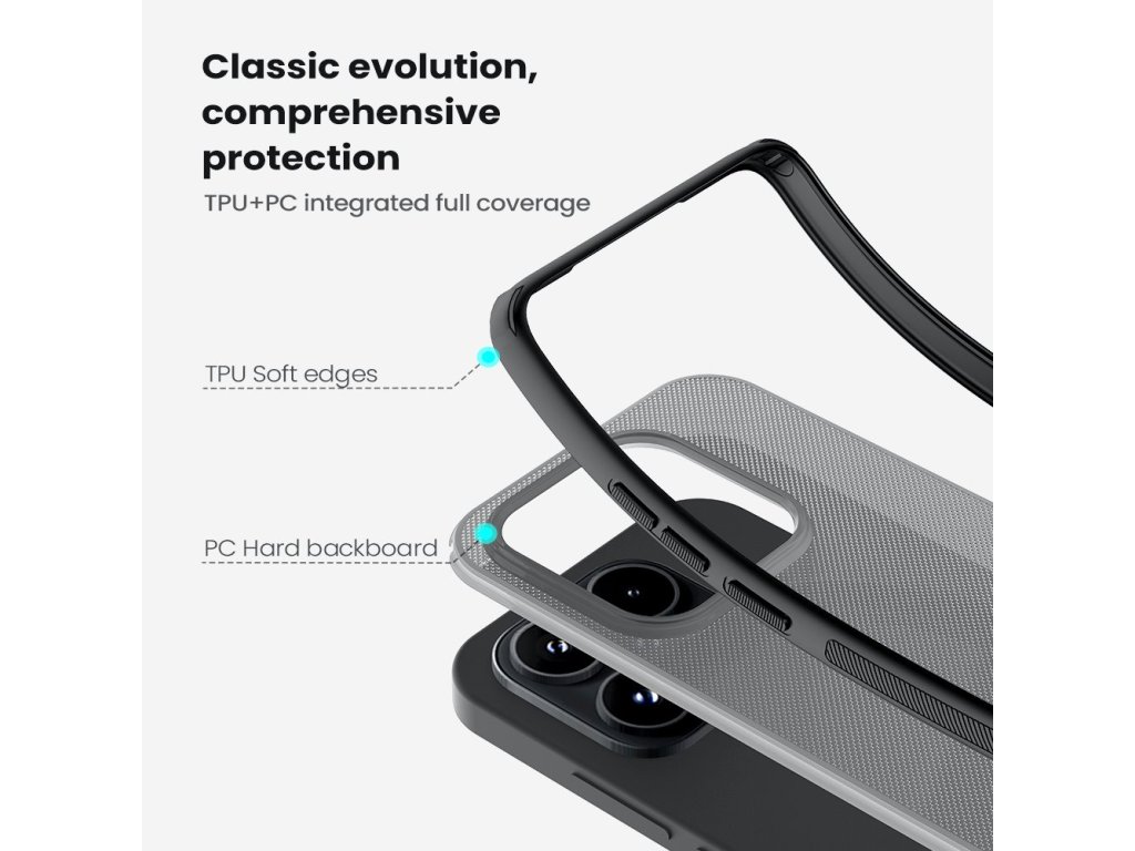 Skládá se z tvrdého a odolného plastu na zadní straně a TPU měkkého plastu na bocích.