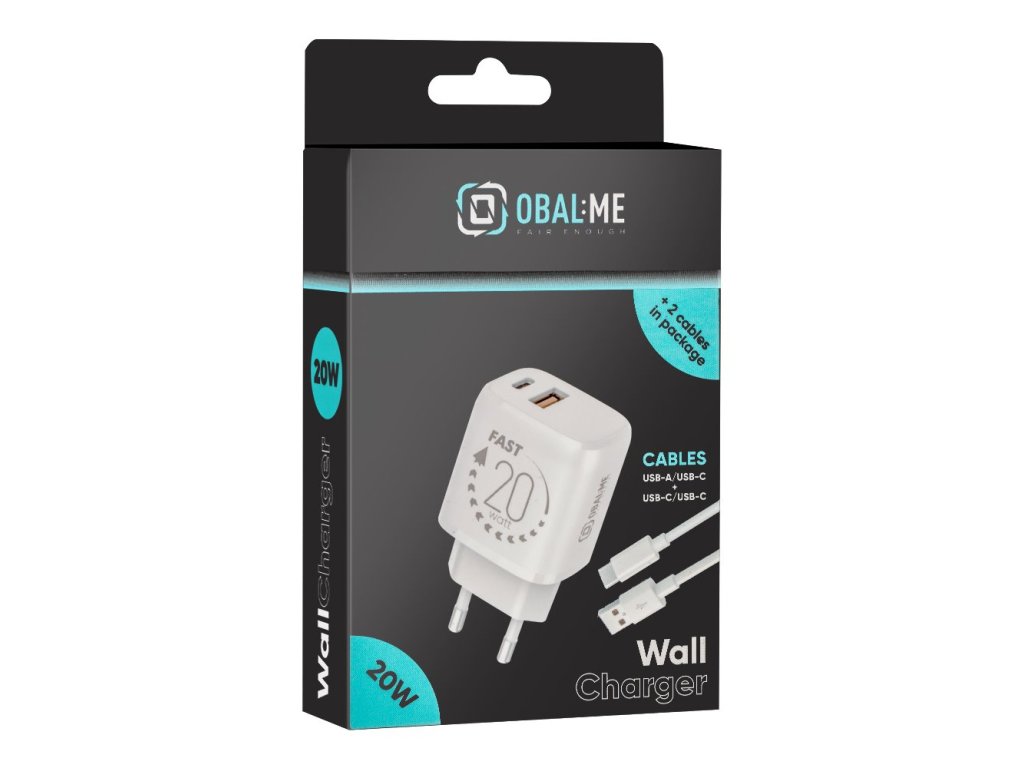 OBAL:ME Cestovní Nabíječka USB-A + USB-C 20W + 2x kabel 1m White
