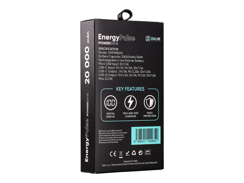 OBAL:ME EnergyPulse Powerbanka 20000mAh 22.5W Black