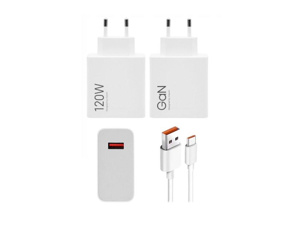 Xiaomi MDY-14-EE USB-A 120W GaN Cestovní Nabíječka + USB-C 6A Datový Kabel White (Bulk)